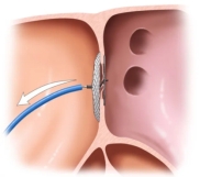 能,通过微创介入手术封堵。局麻下穿刺大腿根部股静脉,经导管将封堵器送达心内卵圆孔部位,将这个小孔牢牢堵住就OK啦。