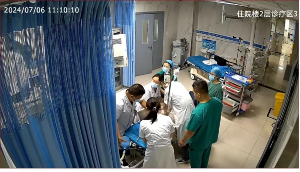 急诊科副主任王二宁和重症医学科副主任问军峰也紧急赶到,行气管插管,转ICU进一步高级生命支持。