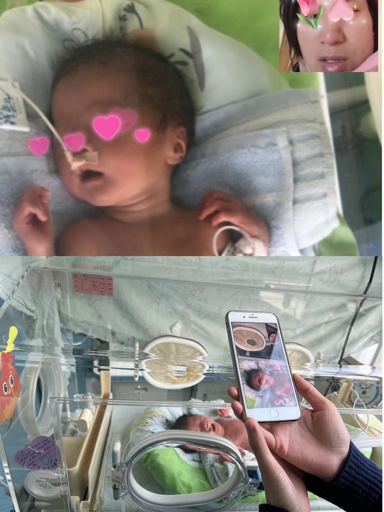 视频的这一头,躺在保温箱里的宝宝睁着眼睛盯着屏幕;视频的另一头,是宝宝爸爸妈妈期盼的眼神。