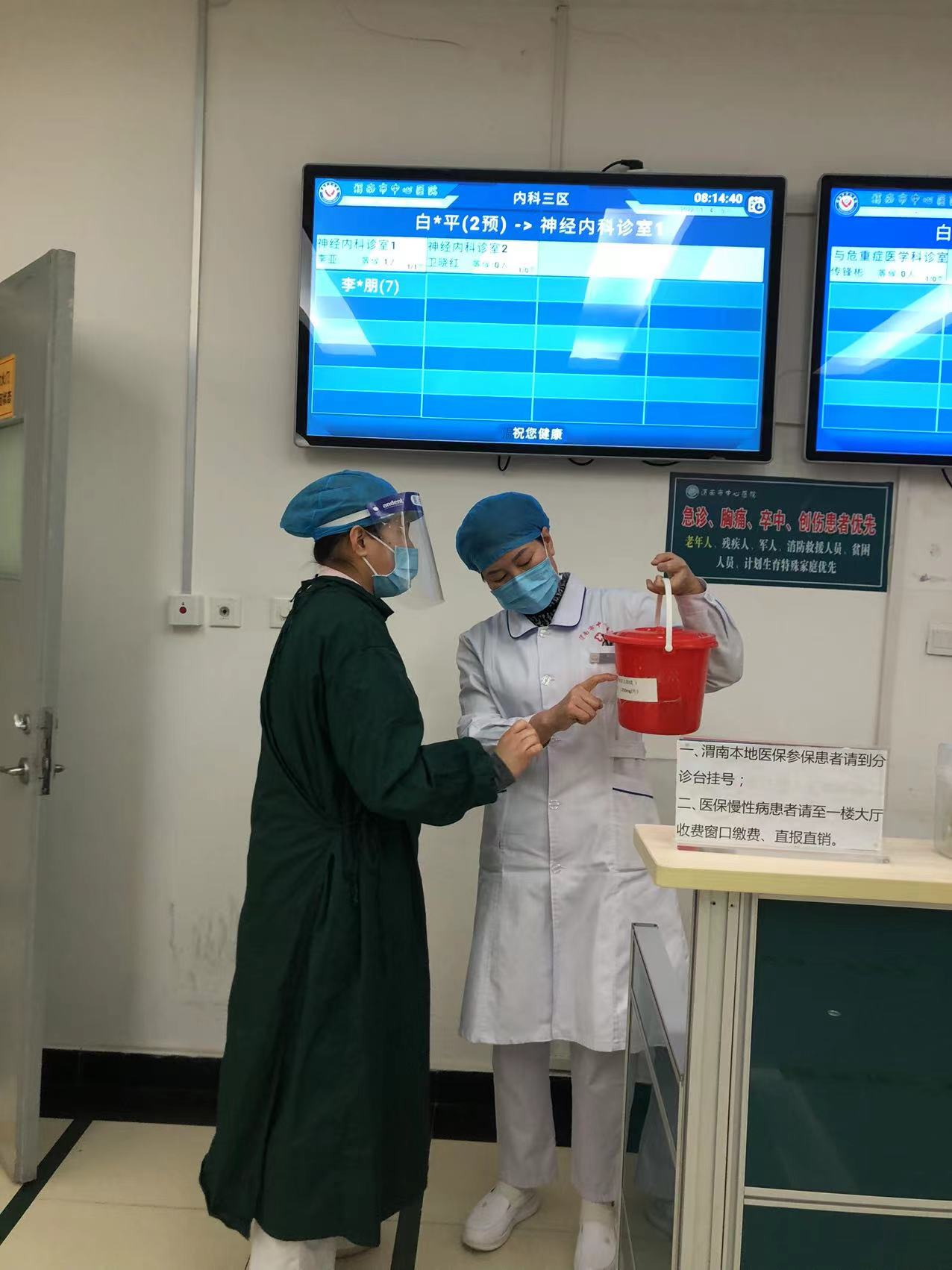 每天上班之后,黄老师都会对门诊大厅各个岗位巡查一遍,不放过任何一个可能造成疫情传播的潜在隐患,防患于未然,及时发现问题,及时指出纠正。