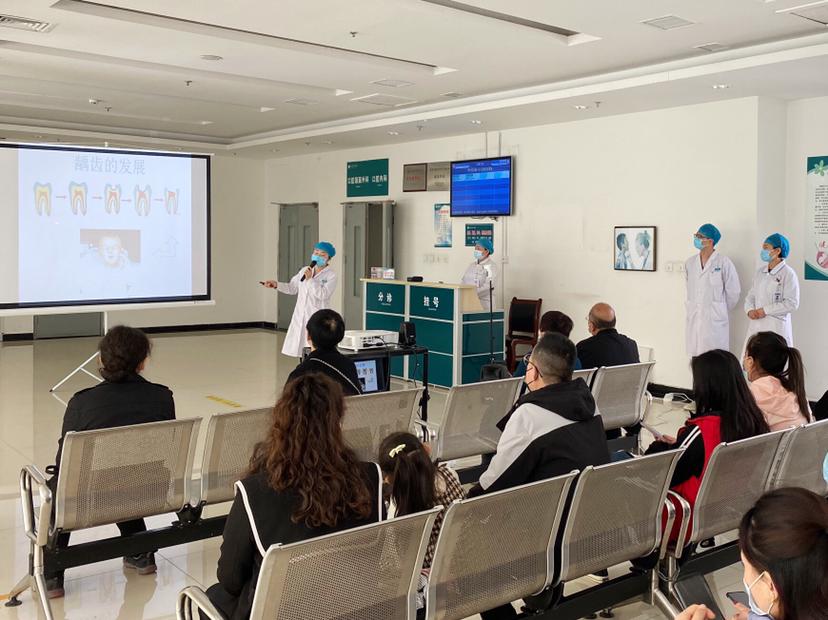 4月7日上午,第21期门诊《健康教育大讲堂》走进口腔科候诊区,为大家普及儿童口腔健康常识,提高儿童口腔保健意识。活动由门诊护士李艳兴主持,口腔科医师李佳全程主讲。