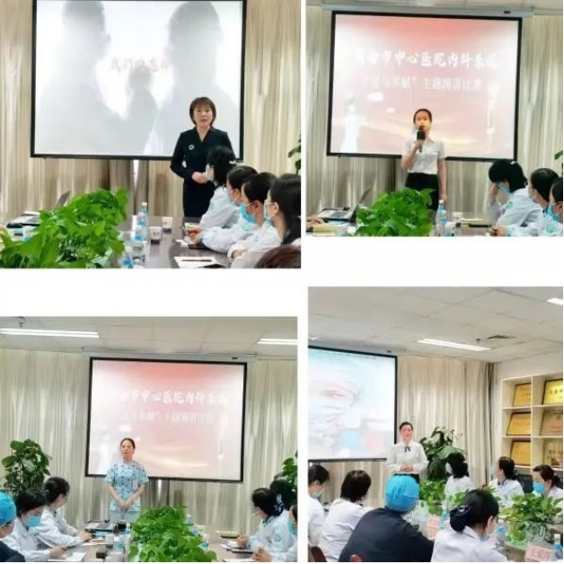 4月7日下午,乐鱼手机站入口内科系统“爱与奉献”主题演讲比赛在神经内科示教室如火如荼进行。比赛邀请急诊科、普通外科两位科护士长现场观摩。