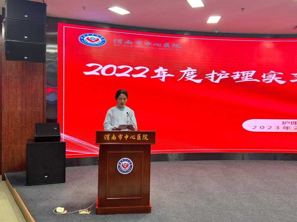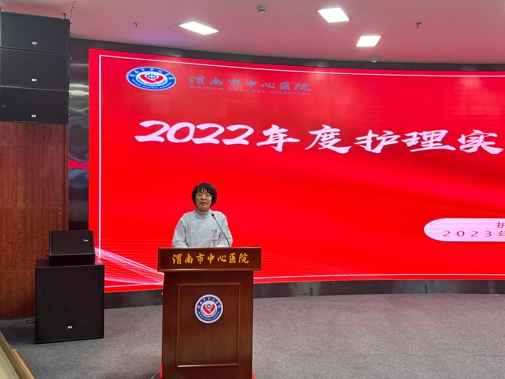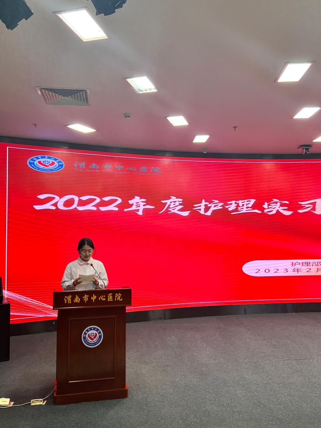 郗旭燕向受表彰优秀带教老师和优秀实习生表示祝贺,对2022年度实习带教工作给予充分肯定。她指出,临床带教是一个教学相长的过程,希望带教老师能够再接再厉,不断提高自身专业能力与素养,为医院护理学科发展培养更多人才。同时对同学们表达期盼与祝福,希望学习发扬渭医精神,以饱满热情投入到未来工作和生活中,创造渭医美好明天。