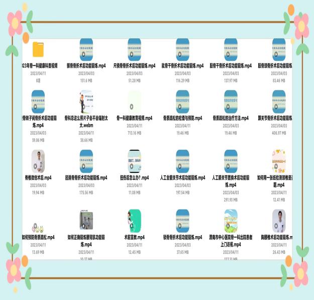 骨科专业性强,手术术式选择较多,颈椎病、腰椎病等常见病也相对集中。而患者掌握相关知识较少,进行术前谈话或选择手术方式往往感觉比较抽象。为此,骨科一病区护理团队在科普宣教上下功夫,广泛收集资料,将一些骨科常见手术的多种手术方式、宣教内容、功能锻炼方法等制作视频存入U盘,将其插入电视,根据不同患者不同病情采取不同功能锻炼方法,经过两个月的时间,共制作科普和功能锻炼视频共计三十余个,每日利用病房内电视循环播放。