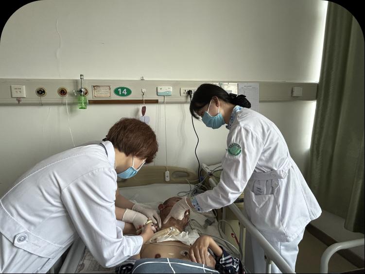 查房前,护士长带领大家学习了人文关怀的护理服务理念,并讲解人文关怀查房的重要意义。责任护士进行病情汇报,围绕患者的护理问题及相应的护理措施进行分析,大家就目前需要解决的护理问题展开讨论,重温气管切开护理以及各引流管路的固定方法,针对问题制定详细的护理计划。