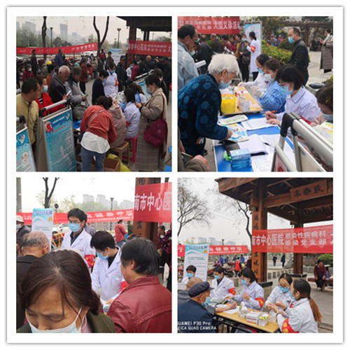 为提高社区广大居民健康保健知识水平,普及传染病防治知识,增强广大患者对传染病的预防意识,4月7日上午9时,乐鱼手机站入口感染党支部、感染性疾病科部分党员、志愿者在支部书记、科主任李红兵带领下联合临渭区疾控一行来到尤河公园北小桥广场为居民进行免费咨询和健康义诊。