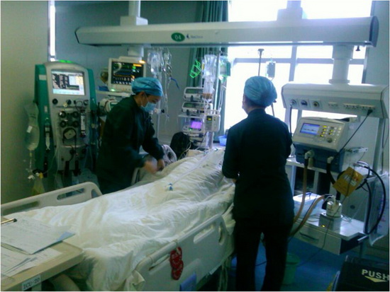这里躺在病床上的每一位病人都有随时终止生命的可能,胃管、尿管、气管插管、各种引流管,中心静脉留置针、周围静脉留置针、各种穿刺针,所有的都不能意外脱落,否则严重时会危及患者的生命;血糖、血压、血氧饱和度,神志情况、瞳孔大小、体温变化、呼吸节律、都要心中有数,随时上报,严防患者病情突变;患者体位要根据病情安置,及时翻身扣背,每一寸肌肤都不能有丝毫损伤;患者大小便不但要及时清理干净还要观察量、颜色、性状等,并严格记录次数及量,一旦异常及时采取措施;患者药物治疗、物理治疗、护理操作及时有效实施,每一瓶液体、每一片药物、每一次操作都要细致精确,所有的工作都得及时准确记录,密密麻麻的重症监护记录单、繁繁琐锁的数据都不能出现错误,否则必须重新抄录……这只是工作的平常状态,突发情况如新病人到来、病人突发病变需要抢救、突然停电、呼吸机故障等情况更是让你本来忙碌的工作陷入持续奋战的状态…… 每次看到门外日夜守候的家属,每次看到探视时病人与家属稀里哗啦的泪水,每次看到不幸突然降临到微弱的家庭,每次听到他们感谢的话语,你所有的疲惫、所有的痛苦、所有的抱怨、所有的不满便在一瞬间烟硝云散。无论是固有的人性本善、还是固有的同情之心都在督促着你不断地为ICU里的每一个病人耗尽你的精力。日复一日的紧张工作赐予了ICU护士敏锐的洞察力、强大的心理承受力、高强度的劳动能力及无缝隙的团结协作力。