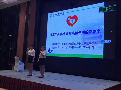 2017年7月22日,由中国卫生质量管理杂志社主办的“第五届全国医院品管圈大赛暨陕西省第三届医院品管圈大赛”在西安举办,本次活动总计上报158个圈成果,经过筛选最终60个成果进行了现场展示,我院推选的骨二科“手护圈”入围。圈成员王萌萌及杨丹代表圈组进行了现场展示,荣获三级医院护理组三等奖。
