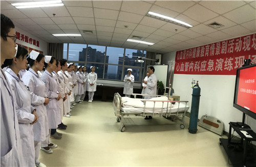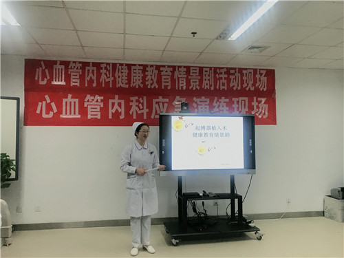 2018年10月24日下午,乐鱼手机站入口心血管内科为进一步提升急诊急救技能及优质护理服务水平,加强医护团队配合,提高护士对突发事件的应对能力及健康教育能力,组织全科护士在十楼示教室开展了“心血管内科急救应急演练及健康教育情景剧”展示。此次活动由郑燕护士长主持,李军农主任,韩红梅副主任现场指导。