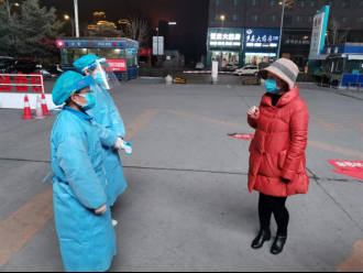 “您好,请您配合检测体温,请问你有何不适症状吗?”“请问您近期到过武汉及其周边地区吗?去过有病例报告的社区吗?”详细询问、耐心引导、不厌其烦对每一位前来就诊的患者进行预先检查、测量体温、询问病史和出行史、接触史。将可疑人员和发热病人及时分检出来,避免可疑传染病人对普通病人和医护人员的交叉感染。每天重复着看似简单实则非常重要且有风险的工作,严格把控疫情防控阻击战的第一道关卡,守好战役的第一道防线。除了对来院人员检测体温,预检分诊还负责登记和引领发热患者就诊。一个班几个小时下来,寒冷的天气让人手脚冰凉麻木,但在岗人员没有一句怨言,而是一边工作一边研究如何将工作做得更好。