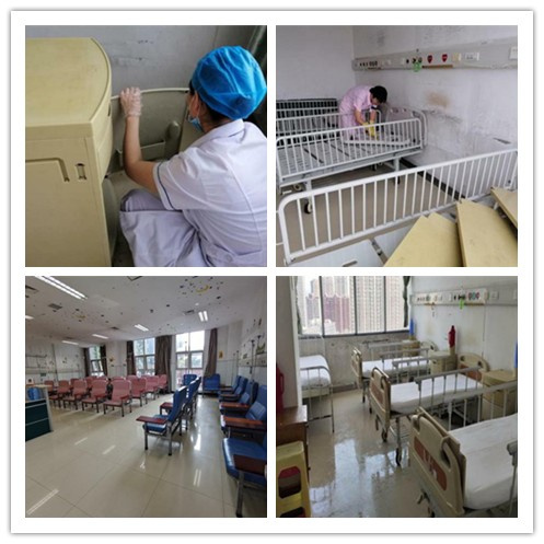 “晒比拼超”活动的开展,犹如强心剂,更大激发了儿科护理人员的工作动力、热情和创造力。安全、舒适的医疗环境,是对患儿治疗需求的首要保障。8月初,儿科护士长杨亚萍组织护士、实习生和保洁员对病区、门诊输液室进行“大扫除”。大家不怕脏,不怕累,将所有病床、床头柜、陪护椅、储藏柜、输液椅以及治疗室、检查室的角角落落,洗涮涮,去污粉、清洁剂、消毒液,按照院感要求,严格消毒处置,甚至每个缝隙都不放过。