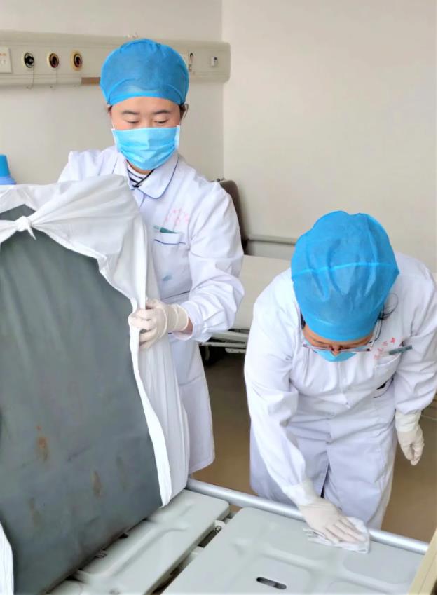 8月8日,护士长阴倩带领科室部分护理人员和护工对科室病区、治疗室、换药室、护士站、值班室等区域进行卫生大清扫,将病区各个区域细致划分、责任包干。大家在各自管辖范围行动起来,小到插线板,大到床板,忙而不乱,井然有序将打扫工作稳步推进,不留死角。同时加强病区所有区域的通风,做到消毒工作全面有效。