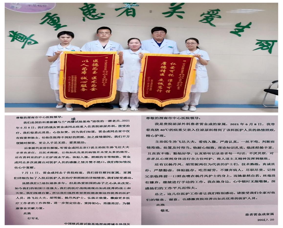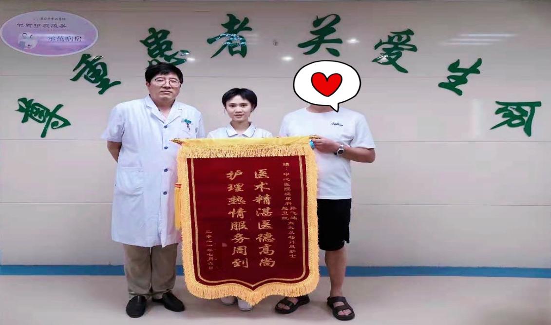 “三分治疗,七分护理,这话一点不假。中心医院泌尿外科护士技术熟练、真诚质朴,你们的工作平凡而伟大︕”患者激动地说。