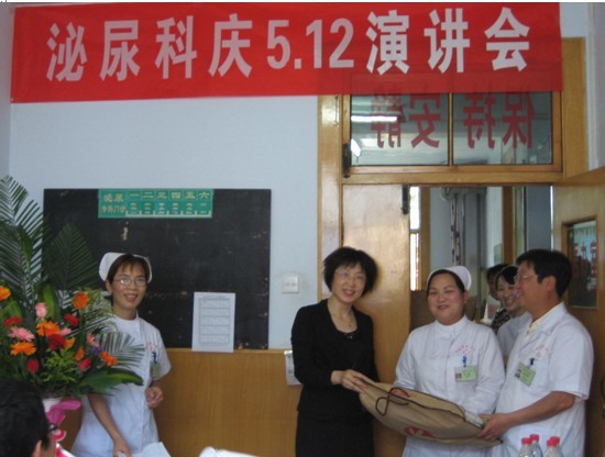 泌尿外科自2010年6月创建优质护理服务示范病房以来,医护患关系更加和谐,病人满意率显著提高。为了将优质护理服务活动更加深入、持久地开展,借“5.12”护士节来临之际,于2011年5月5日下午在泌尿外科医办室举办了庆祝“5.12”护士节暨优质护理服务演讲会,主管院长黄慧玲、护理部副主任雷爱英、外科楼全体护士长及泌尿外科全体医务人员参加了会议。