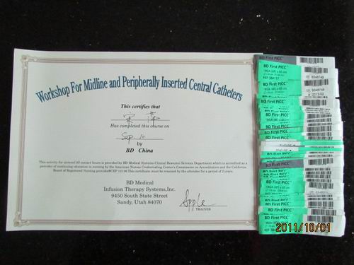 9月24日受省静疗学会特邀,科内两名同志参加了省静脉治疗学术交流会,再次更新了理念,特在科内成立了静脉通路小组。对每位住院患者进行血管评估、保护血管教育、选择血管通路器材(钢针、浅静脉留置针、经外周中心静脉置管等)、认真组织实施、观察总结效果等。成员分工明确,各司其职,认真执行《输液治疗护理实践指南》,做到:钢针零容忍;常规浅静脉留置给药;刺激性药物经外周中心静脉置管给药。把好静脉通路的每一道关口。做出肿瘤科“畅通红色通路,输注抗癌新希望”的品牌,造福广大肿瘤患者。