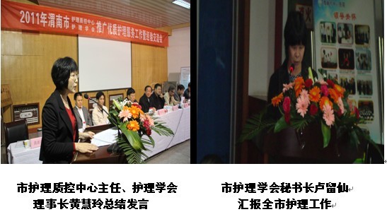 2011年10月11日,渭南市护理质控中心、护理学会在市中心医院隆重召开全市推广优质护理服务工作暨经验交流会。市卫生局副局长孙希平,副调研员、医政科科长周增荣,医教科科长朱海战,市中心医院院领导出席了本次会议。市护理质控中心主任、护理学会理事长、中心医院副院长黄慧玲主持会议。我市15家医院的主管院长、护理部主任携护理骨干及中心医院护士长、部分护理人员近150人参加了交流会。本次交流会的主要目的旨在:紧紧围绕优质护理服务工作开展情况,交流经验,研究问题,商讨对策,为全市各兄弟医院搭建相互学习、共同进步的平台,推进优质护理服务工作向深度和广度健康发展。