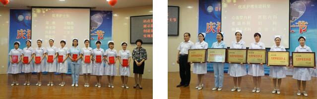 副院长黄慧玲与优秀护士长合影 总会计师李华峰与优质护理先进科室合影