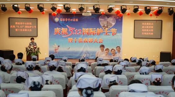 5月11日下午,我院举办了庆祝“5·12”国际护士节暨十佳表彰大会。市卫计局副局长李晓平、医政科科长李娟,我院院级领导及各科室主任、护理工作者近500人参加了会议。会议由院党委书记鲁海燕主持。