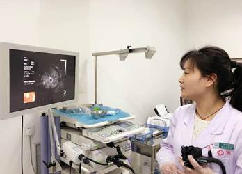 超声内镜检查(EUS),顾名思义,是一门将内镜与超声结合在一起的检查技术,通过该检查可以获得胃肠道的层次结构的组织学特征及周围邻近脏器的超声图像,医生借助锐利的电子眼,进一步提高消化道疾病的诊断的准确性,对早期消化管癌、胆管癌、胆囊癌、胰腺癌的检出率,居所有检查法之首。今年年初,市中心医院消化内科开始对适应病人进行超声内镜检查(EUS),收到良好效果,在该领域填补了我市空白,为下一步开展更多的内镜下治疗提供了更加全面的保障。
