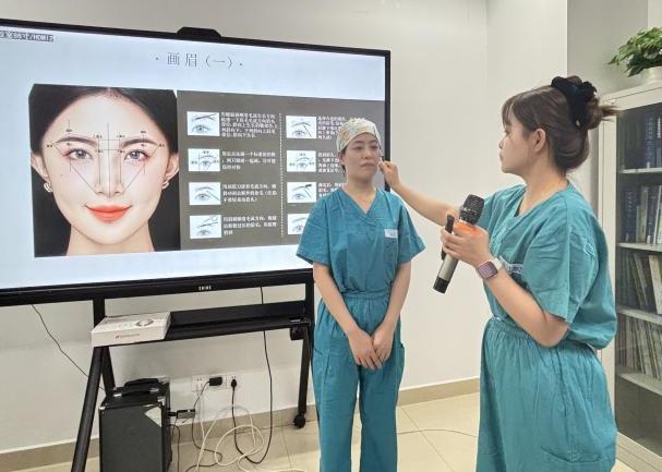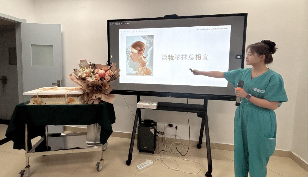 在职业形象提升环节,主管护师也是科内的美妆达人林芝围绕职业形象管理主题,通过图文演示与实操指导相结合的方式,系统讲解医务人员妆容规范。从基础护肤到职场淡妆,从色彩搭配到礼仪细节,帮助女职工在保持专业严谨的同时,展现新时代医疗工作者的精神风貌。
