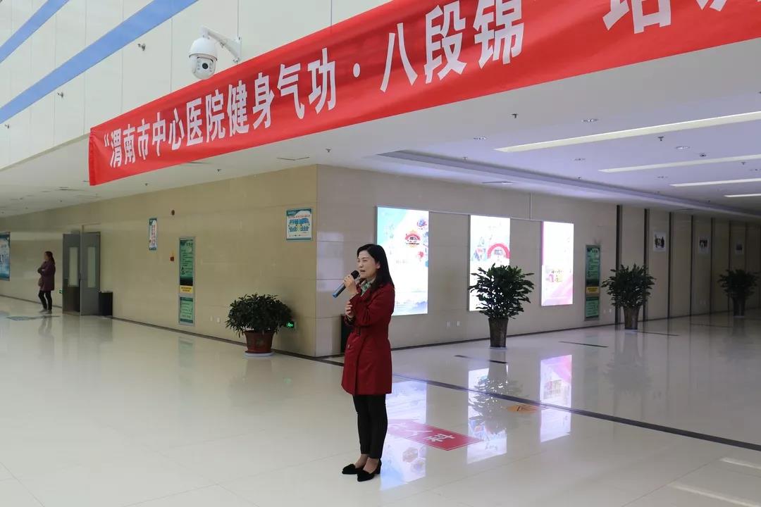 工会孟俊样副科长在开班仪式上对医院开设八段锦培训班的目的做了介绍,并期望所有学员认真学习,强健体魄。