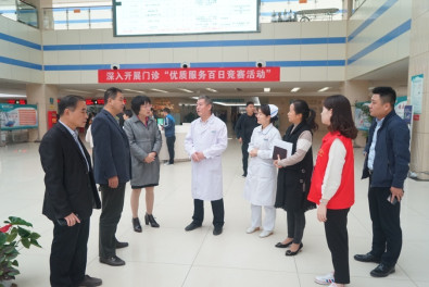 会前,参会人员前往门诊大厅,实地了解了门诊志愿服务岗位设置、工作流程、服务项目,向志愿者询问了服务情况。