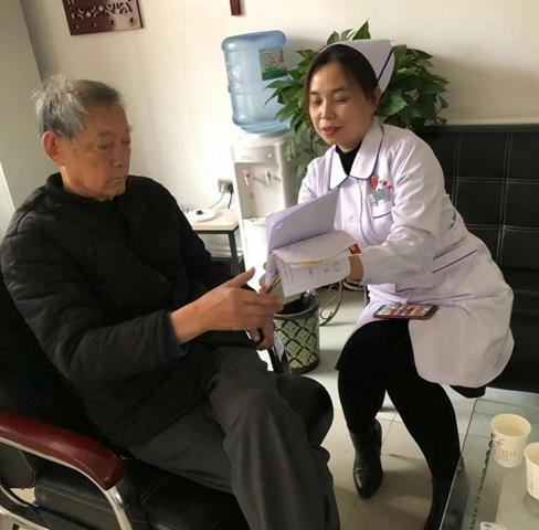 义诊中,一位84岁的老红军亲手将自己珍藏多年的毛主席徽章戴在了田彩玲护士长的胸前,感谢她对自己细致入微的照顾。