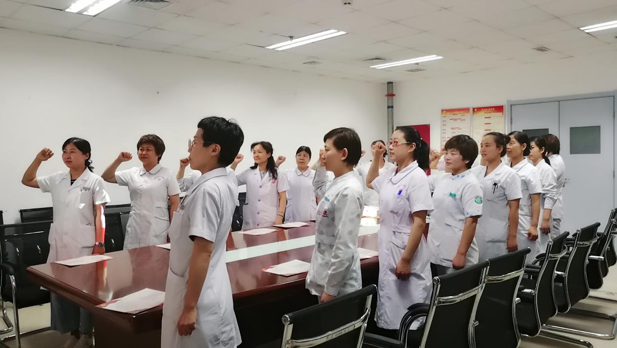 全体党员面对鲜红的党旗,紧握右拳,重温了入党誓词,以集体践诺的方式履行共产党员的初心和使命,激励每一个医务工作党员为党徽增色、为党旗添彩。