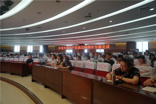 为庆祝中国共产党成立99周年,7月1日,渭南市委党校教授王四海以《中国共产党的奋斗历程和基本经验》为题,为市直卫健系统全体党员讲授专题党课,我院100余名党员参加。