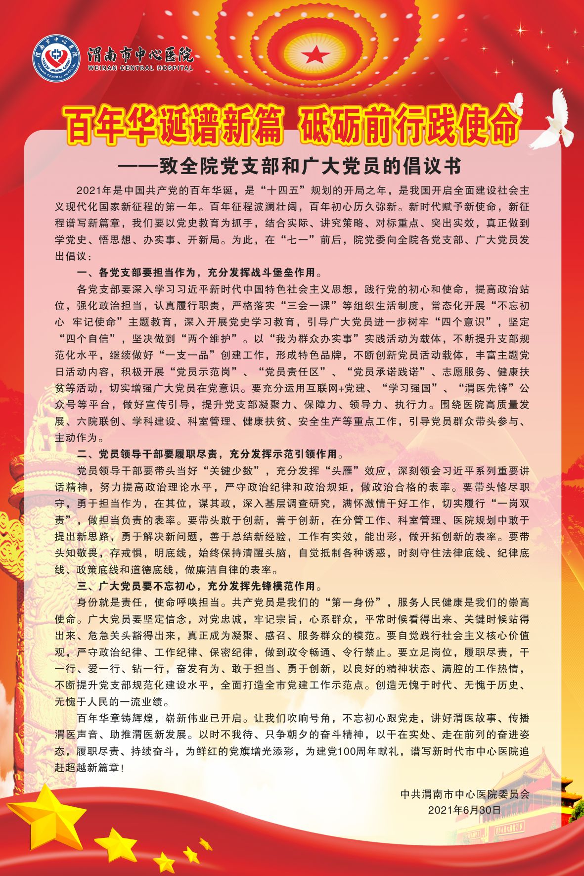 百年华诞谱新篇 砥砺前行践使命---——致全院党支部和广大党员的倡议书