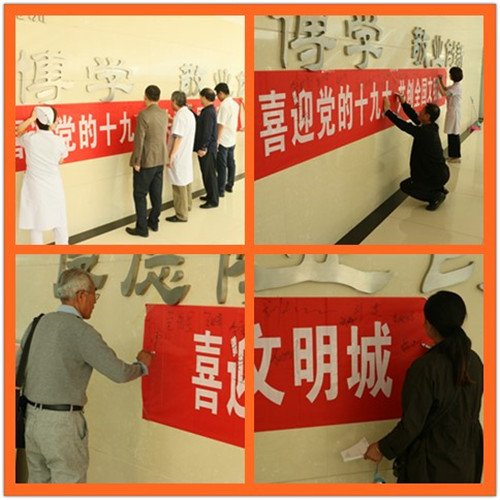 为了认真落实市委、市政府对创建工作追赶超越的要求,积聚力量,凝聚共识,着力营造卫计系统共创共建的浓厚气氛,近日,我院创建办组织开展以“喜迎党的十九大,共创全国文明城”为主题的签名活动。