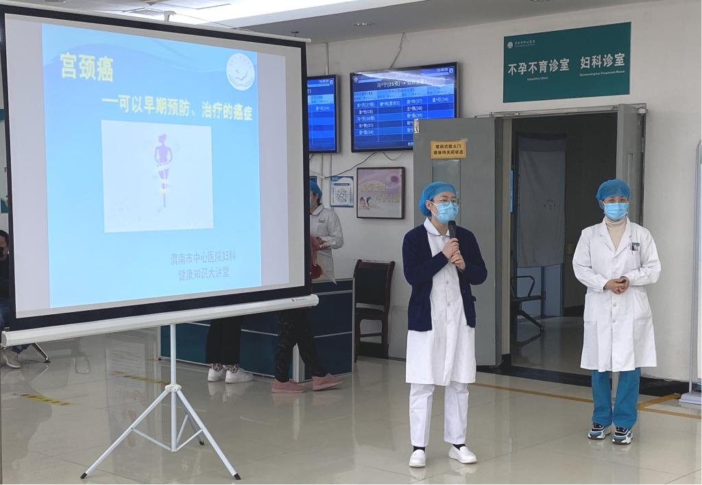 1月13日,乐鱼手机站入口门诊第17期健康教育大讲堂走进妇科,围绕宫颈癌知识,为现场女性朋友开展了一场专题讲座。此次活动由门诊部护士任思静主持,妇科副主任医师师萍萍主讲。