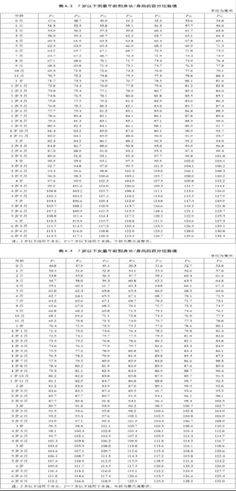 注:如果您的孩子大于7 岁,则可参考国家卫健委2018年发布的《7 岁~18 岁儿童青少年身高发育等级评价》