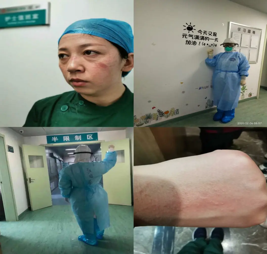 张晓翠当时的工作主要是为病床间更换液体,为危重病人翻身,照顾饮食,做大小便护理,还要进行穿刺。由于长时间穿着厚厚的防护服、隔离衣,加上循环往复的工作,张晓翠的全身几乎是被汗水浸透。有一天,张晓翠一直工作到半夜12点多,稍微休息片刻,当她脱下护用品时面部已经出现了明显的机械性压疮。