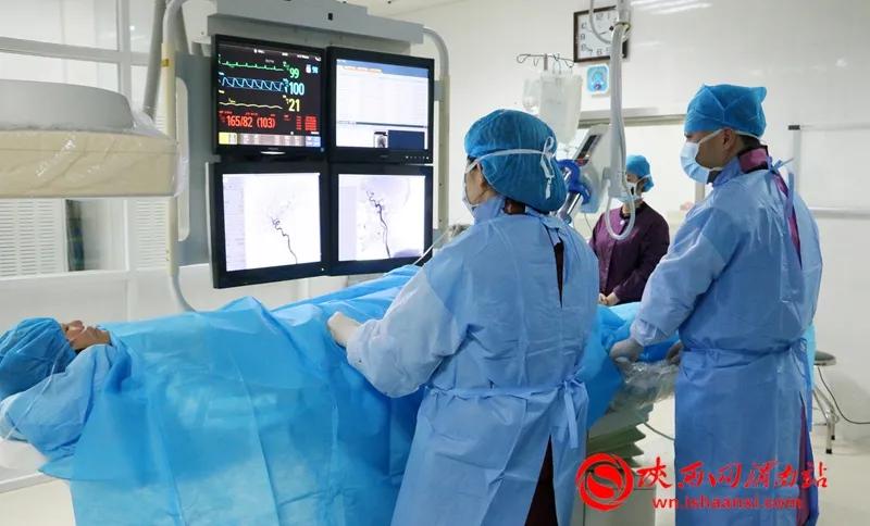 神经内科医护人员进行脑血管造影手术。