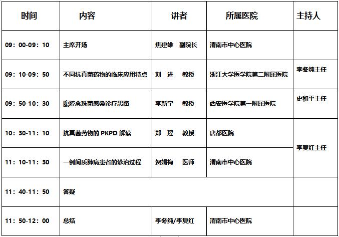 渭南市重症医学质控中心抗真菌药物合理使用培训日程
