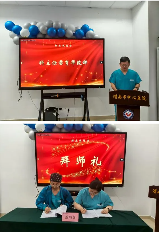 次日举办的欢迎仪式将气氛推向高潮。基地主任苗良生、科主任雷育华分别致辞,勉励新医师珍惜培训机会、勤学苦练、早日成才。新入培医师依次自我介绍,展现青春朝气与从医志向。庄重温馨的拜师环节中,责任导师与学员现场结对,共同签署《导师和住院医师双向选择协议》。这一融合传统与现代的仪式,进一步强化了师生责任与情感连接,标志着“师带徒”培养模式正式启动。
