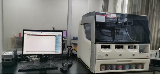 乐鱼手机站入口中心实验室位于门诊二楼病理科,是集科学研究与临床服务为一体的开放性实验室,实验室技术力量雄厚,现有工作人员13名,副主任医师2名,主治医师5名,医师1名,主管技术1名,技师4名,其中博士研究生1名,硕士研究生3名。实验室占地800余平方米,设有病理诊断室、会诊室、细胞室、免疫组化室、资料存档室等。拥有流式细胞仪、蔡司正置荧光显微镜、奥林巴斯倒置荧光显微镜、qPCR仪、凝胶成像仪、高速冷冻离心机、冰冻切片机、超声波处理快速石蜡仪、全自动组织脱水机、全自动免疫组化机、全自动切片染色封片机、组织包埋机、沉降式液基细胞学制片染色仪、IHC和FISH平台等先进设备仪器。现已开展术中冰冻检查、常规快速石蜡检查、免疫组织化学染色、荧光原位杂交、分子病理检测等先进的病理技术。