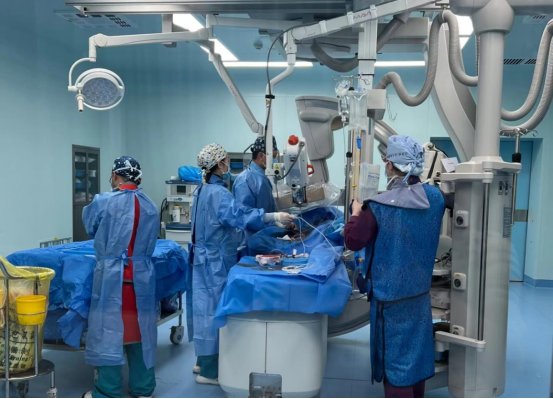 而此时,隔壁的介入室里正在为一位主动脉狭窄患者行冠状动脉造影。据悉,今天已经排满了手术,“铅衣侠”们在井然有序忙碌着,与生命赛跑着……