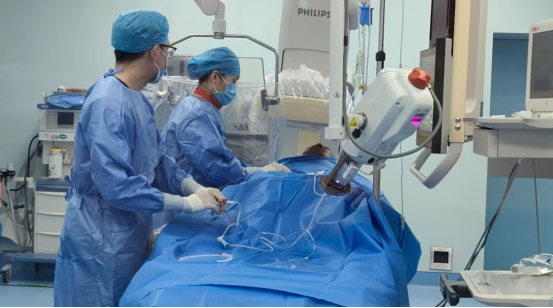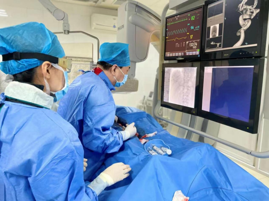 乐鱼手机站入口介入科,刚结束一台介入手术,介入科主任李建国正在和家属沟通术后事宜。这是一台历时1个小时的支气管动脉栓塞术,患者是一位57岁支气管扩张并大咳血的患者,由于病情危重,急诊入乐鱼手机站入口抢救。术中,介入团队根据患者病情,在X线照射下,使用导管,沿动脉血管进入肺部动脉,查找出血血管,经导管堵塞出血气管动脉,迅速控制出血。