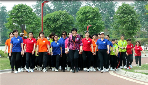 健步走活动中,参加人员统一着装,兴致高昂、阔步向前,围绕南湖行进。大家一边呼吸着天然氧吧的新鲜空气,一边享受着健步走带来的激情活力。