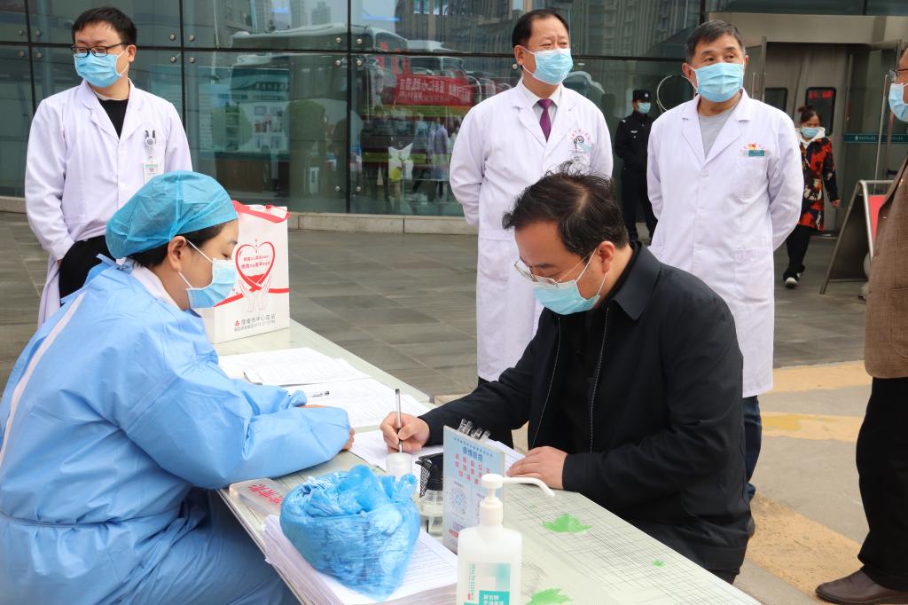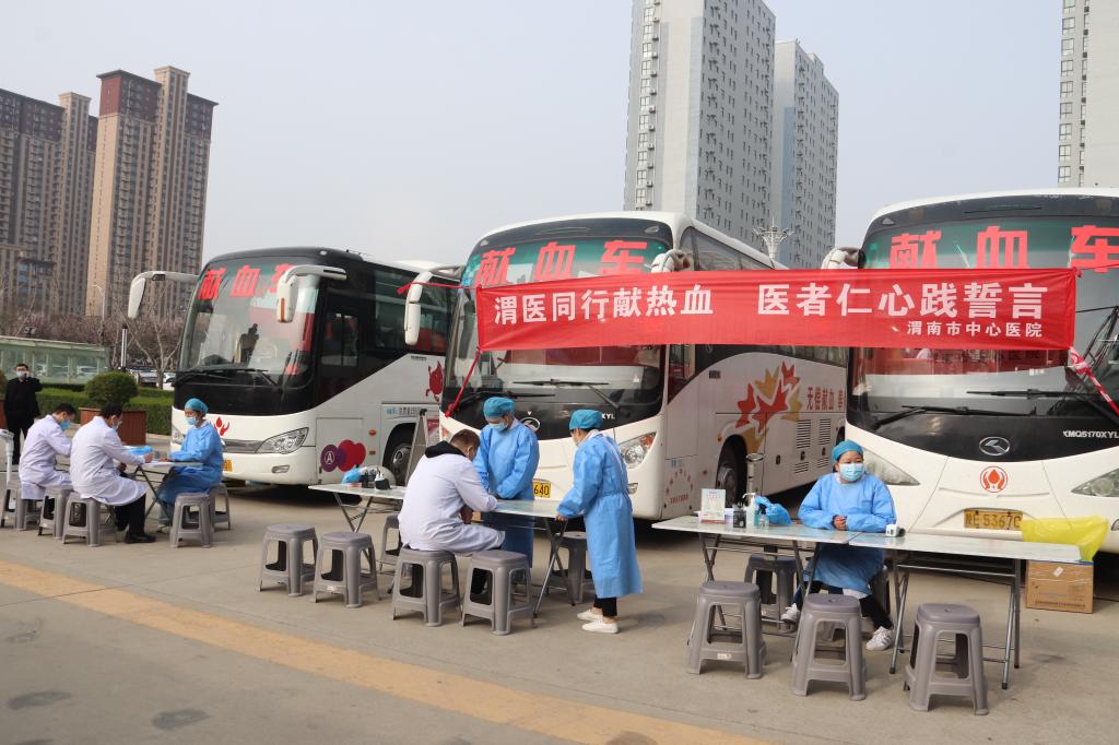 3月18日,乐鱼手机站入口联合市中心血站在医院门诊楼前开展以“渭医同行献热血 医者仁心践誓言”为主题的无偿献血活动。