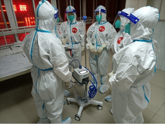 在隔离病区,对患者的心理疏导和鼓励,是救治工作中一项非常重要的事情。36床的王阿姨看着家人陆续出院,自己仍要接受进一步的治疗,心理压力非常大,焦虑、失眠、还常哭泣。曹蕙获悉后主动与患者进行沟通,面对面交流,和患者唠家常,鼓励患者与家人共同参与心理关怀,直到王阿姨康复出院。这样的暖心小感动时常发生,我们的医护人员每天都在用心、用情、用过硬的技术守护着这里的每一位患者……