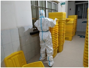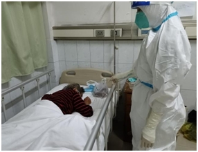 由于疫情特殊、条件特殊,贾温萍和她的战友们身兼数职,除了日常的常规护理工作外,还要对患者进行日常生活护理,包括照顾患者饮食、清理呕吐、排泄物、病房消杀工作等,尽自己最大的努力帮助患者早日康复。为患者护理、耐心疏导、体贴安慰是最基本的工作内容,虽然患者见不到她们的面容,但她们用行动和温暖的语言关爱体贴着每一位患者,给他们信心和战胜病毒的勇气。