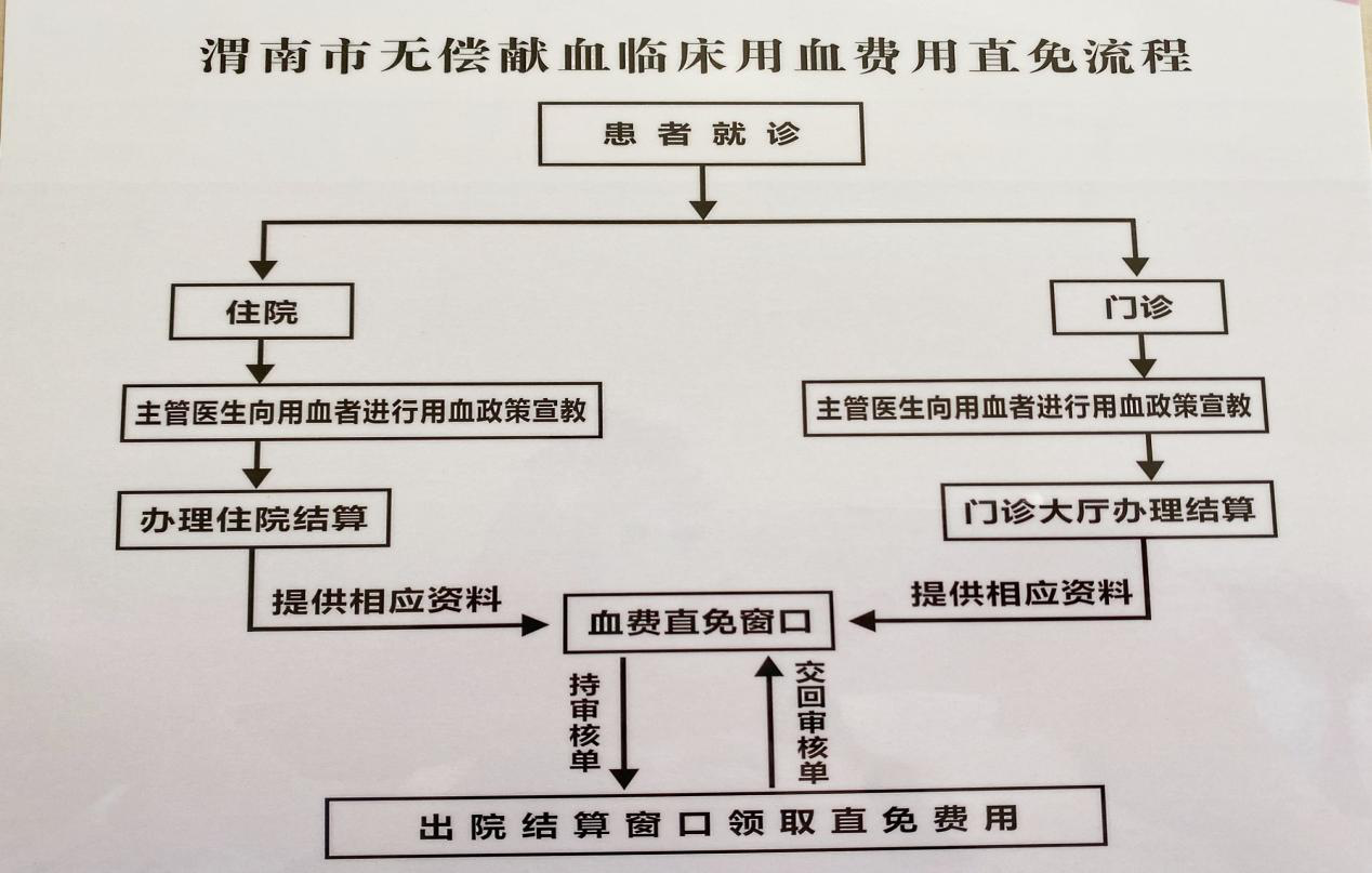 为庆祝建党百年,贯彻落实市卫健委关于“我为群众办实事”实践活动的部署和要求,推进我市无偿献血者临床用血费用直免该项工作的落实,让无偿献血者享受更便捷的服务,凡在我院用血的无偿献血者费用直免流程如下: