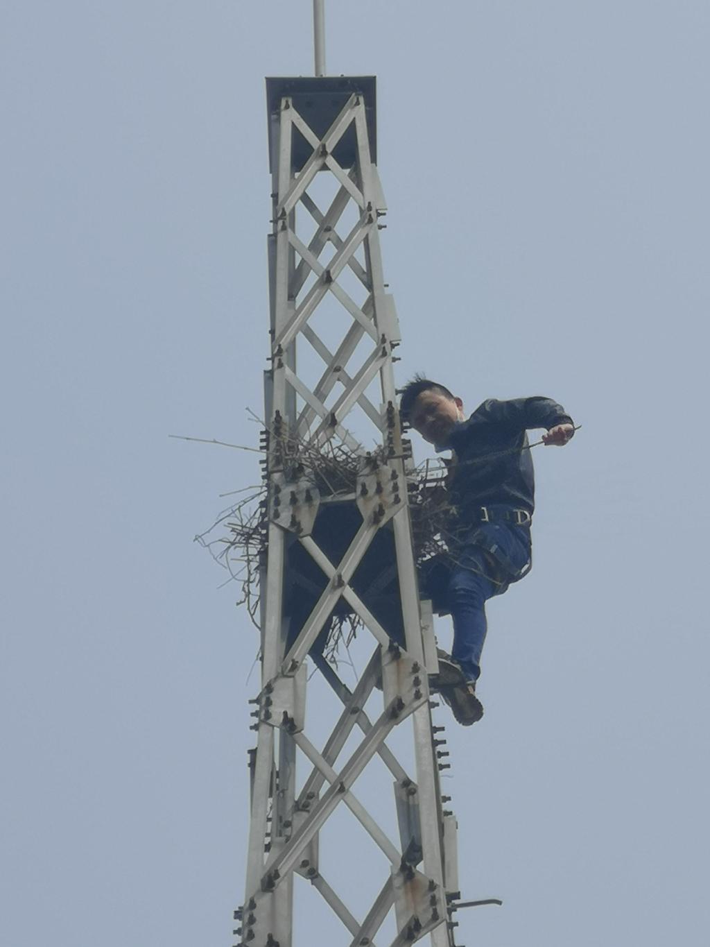 检查中,保卫科微型消防站队员对液氧站避雷塔顶端搭建的鸟巢进行拆除,避免了雷雨天气下存在起火的可能,降低了液氧站的风险。
