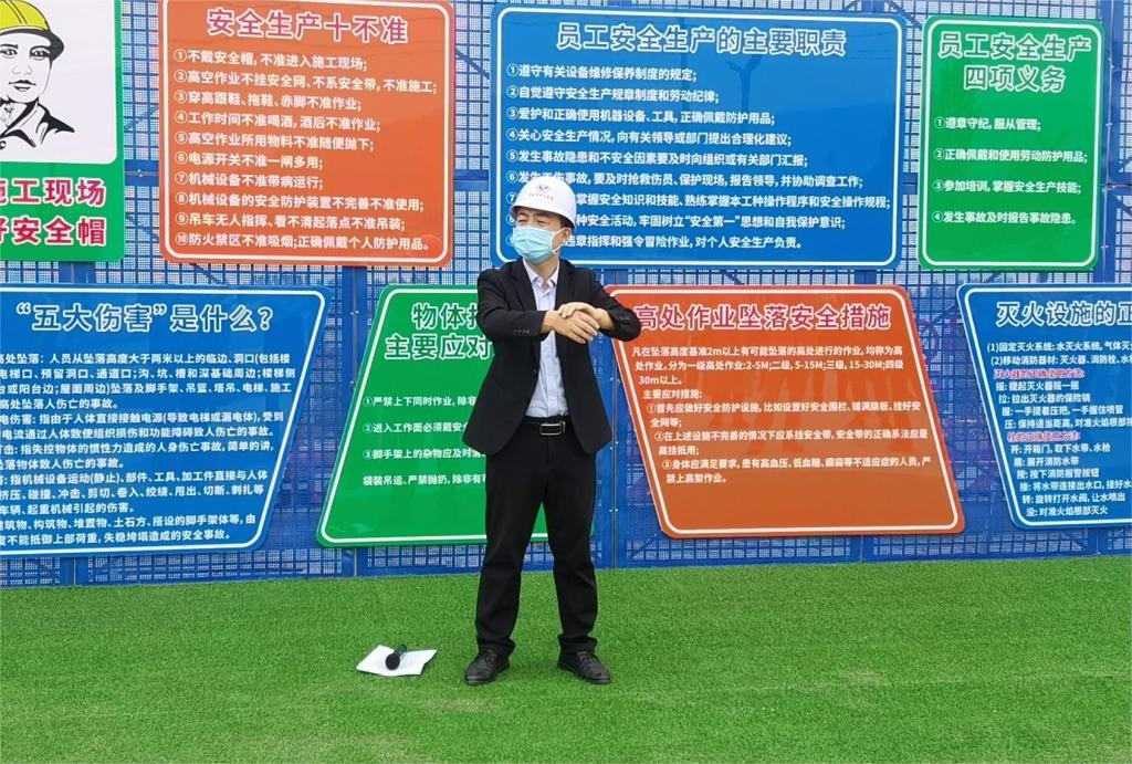市中心医院控感专员吴黄飞对项目现场全体人员进行知识培训。重点对《陕西省住建厅关于进一步做好建筑施工工地新冠肺炎疫情防控的通知》《关于统筹做好建筑工地复工复产疫情防控和安全生产工作的通知》、新型冠状病毒肺炎防控方案(第九版)》《重点场所重点单位重点人群新冠肺炎疫情常态化防控相关防护指南》做了详细培训指导。