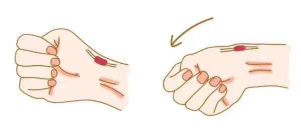 (2)将拳头向小拇指方向下压(即腕关节向尺侧倾斜活动)