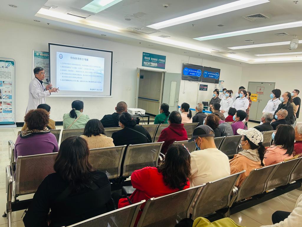 4月17日上午,门诊健康大讲堂走进骨科门诊,由骨二科主任医师武东升和药剂科主管药师渠晨,围绕“骨质疏松症”这一常见病及“补钙”健康知识,为现场患者开展知识科普讲解。