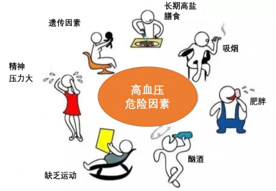 高血压的危险因素包括遗传因素、长期高盐膳食、吸烟、肥胖、酗酒、缺乏运动、精神压力大等多个方面。